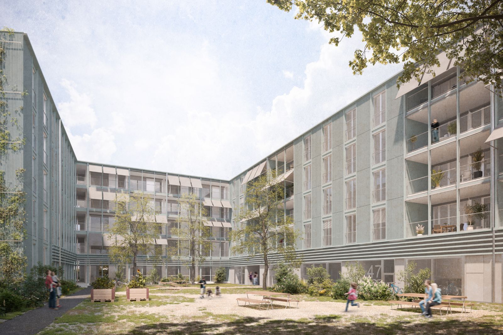 Ein Wohnhaus wird im Norden des Areals Erlenmatt Ost den Stadtteil zu einem geschlossenen Ganzen machen. Geplant ist ein Gebäude in Form eines Hufeisens, das einen üppig begrünten Innenhof umschliesst.
