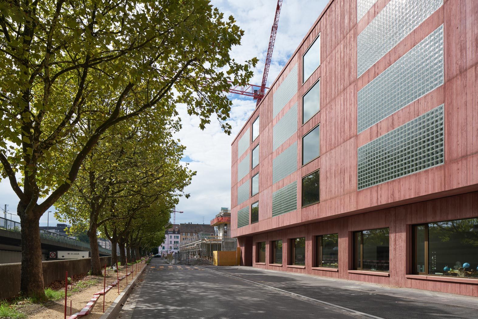 Im L-förmig angeordneten Gebäudeensemble aus auffälligem rotem Beton in Erlenmatt Ost ist das Ideal einer barrierefreien Zugänglichkeit weitgehend Realität: In einem Teil der insgesamt zwölf kompakten 2.5- bis 4.5-Zimmer-Wohnungen leben kleinere und grössere Familien.